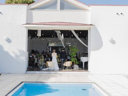 パーティ会場には、プール付きのテラススペース付き!どこを切り取ってもフォトジェニックな空間がたくさん。
